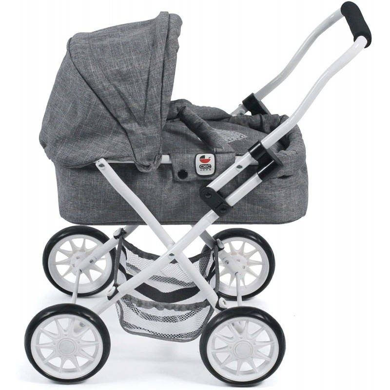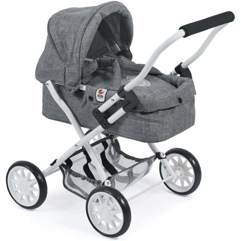 Καρότσι κούκλας πτυσσόμενο, με φανταστικό χρώμα Denim Jeans Grey, με αφαιρούμενο μαλακό port bebe για μεταφορά, αναδιπλούμενη κουκούλα και δίχτυ αποσκευών. Ύψος τιμονιού καροτσιού περίπου 56cm Ιδανικό για κούκλες έως 40cm Ειδικά σχεδιασμένο για τις μικρές μανούλες. Ενθαρρύνει τη δημιουργικότητα του παιδιού σας και το συνοδεύει στα πρώτα του βήματα. Διαστάσεις ανοικτού καροτσιού: 56 x 37 x 56cm , Βάρος: 2,3 kg.