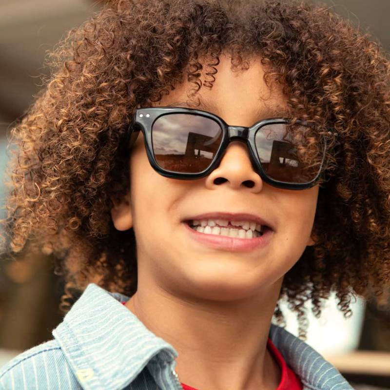 Τα παιδικά γυαλιά ηλίου #Road Black Road συνδυάζουν έναν γυαλιστερό μαύρο σκελετό με ένα ελαφρώς oversized ορθογώνιο σχήμα. Οι καφέ φακοί προσφέρουν μέγιστη προστασία από την UV ακτινοβολία. Με έντονο και δυναμικό στυλ, προσφέρουν άνεση και προστασία σε παιδιά ηλικίας 7–11 ετών σε κάθε τους έξοδο και εξερεύνηση.