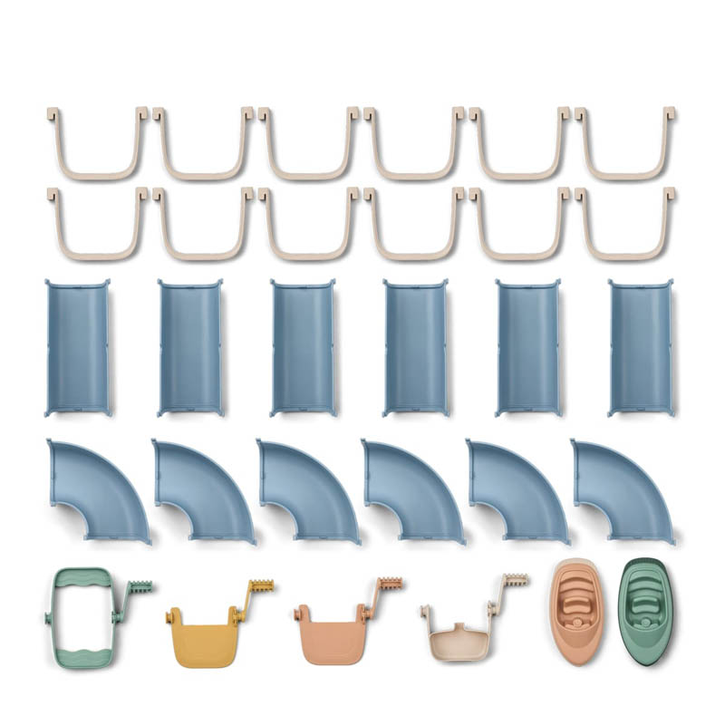 Δημιουργήστε το σκηνικό για παιχνιδιάρικες περιπέτειες με το σετ υδάτινου δρόμου CASSIAN. Από την καθοδήγηση βαρκών μέσα σε λιμνούλες και κανάλια μέχρι την περιστροφή τροχών και το άνοιγμα γεφυρών, οι μικροί μηχανικοί μπορούν να φτιάξουν τους δικούς τους μίνι υδάτινους κόσμους, μαθαίνοντας μέσα από το παιχνίδι καθώς ρίχνουν, πιτσιλίζουν και εξερευνούν πώς κινείται και ρέει το νερό.