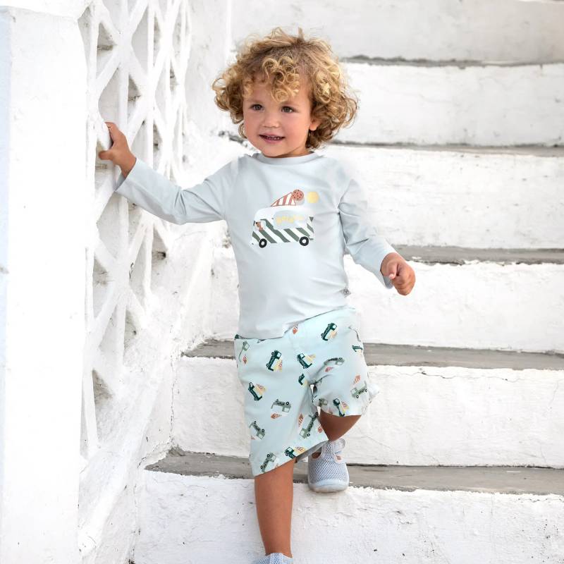 Καλοκαίρι, ήλιος, παγωτό! Το κοντό μαγιό LÄSSIG Board Shorts με αντηλιακή προστασία UV 80 και ενσωματωμένη πάνα κολύμβησης φέρνει μια πινελιά Ιταλίας στους μικρούς λάτρεις του ήλιου και εγγυάται ξέγνοιαστη διασκέδαση στο νερό.