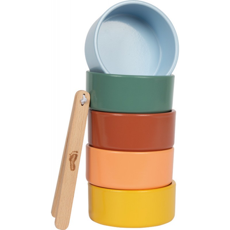 Εκπαιδευτικό παιχνίδι ταξινόμησης Montessori από ξύλο με πιστοποίηση FSC® 100%, που περιλαμβάνει πέντε χρωματιστά μπολ, 15 στοιχεία σε σχήμα κύκλου, τριγώνου και αστεριού, καθώς και δύο ζεύγη λαβίδων για πιάσιμο και ταξινόμηση. Τα παιδιά μπορούν να ταξινομούν τα στοιχεία ανά χρώμα, να τα μετρούν, να τα αδειάζουν ή να τα συνδυάζουν δημιουργικά – μόνα τους ή μαζί με άλλους. Με αυτόν τον τρόπο ενισχύεται ο συντονισμός χεριού-ματιού, αλλά και η υπομονή, η συγκέντρωση και η πρώτη μαθηματική σκέψη. Ένα πολυλειτουργικό παιχνίδι μάθησης και ταξινόμησης για μικρά παιδιά, σχεδιασμένο σύμφωνα με τη φιλοσοφία Montessori.