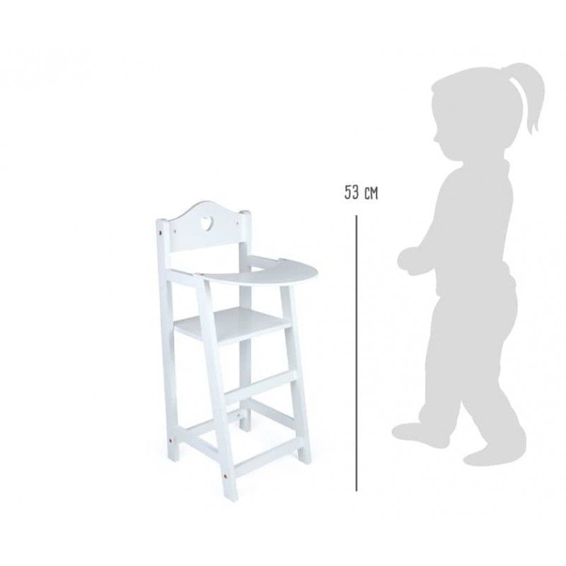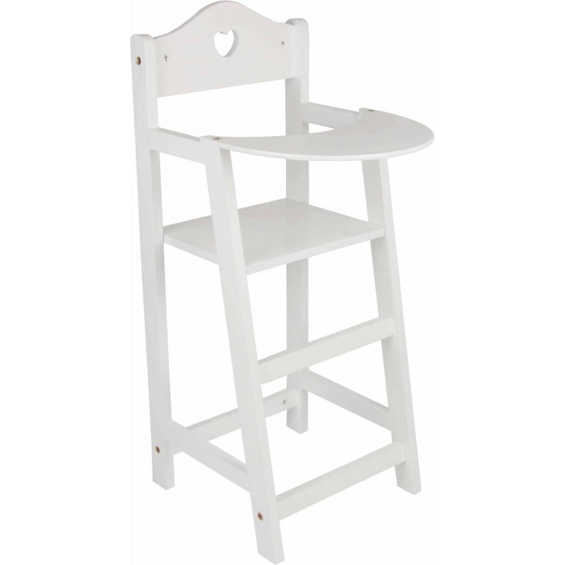 Ξύλινο καρεκλάκι κούκλας λουστραρισμένο σε λευκό χρώμα με ένα μικρό σχήμα καρδιάς, μια κομψή προσθήκη για τη κούκλα σας.