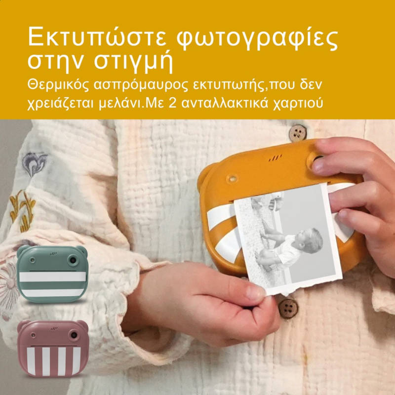 Χαρίστε τη Μαγεία της Φωτογραφίας στο Παιδί σας Η Ψηφιακή Φωτογραφική Μηχανή ZAZU Fun είναι ειδικά σχεδιασμένη για παιδιά από 3 ετών και άνω, προσφέροντας αμέτρητες ώρες δημιουργικότητας και διασκέδασης. Άμεση Εκτύπωση Χωρίς Μελάνι Εκτύπωση στη Στιγμή: Με τη θερμική ασπρόμαυρη εκτύπωση, οι φωτογραφίες μετατρέπονται σε μικρά έργα τέχνης μέσα σε δευτερόλεπτα. Οικονομία και Ευκολία: Δεν χρειάζεται μελάνι! Απλώς τοποθετήστε έναν κύλινδρο χαρτιού (διαστάσεις: πλάτος 5,5 cm, διάμετρος 2,5 cm). Δύο Κύλινδροι Χαρτιού Περιλαμβάνονται: Κάθε κύλινδρος προσφέρει έως και 60 εκτυπώσεις, ιδανικές για ατελείωτη δημιουργικότητα. Εντυπωσιακή Ποιότητα Εικόνας και Βίντεο Υψηλή Ανάλυση: Με ανάλυση 48 Mega Pixel, οι φωτογραφίες είναι καθαρές και ζωντανές.