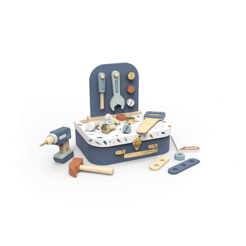 Ετοιμαστείτε να κατασκευάσετε, να επισκευάσετε και να φανταστείτε με τη Βαλίτσα Εργαλείων, ένα πρακτικό σετ ξύλινων παιχνιδιών σχεδιασμένο για μικρούς κατασκευαστές 36 μηνών και άνω. Συσκευασμένο με 1 κρεμαστή σανίδα και 19 ξύλινα αξεσουάρ, αυτό το συναρπαστικό σετ επιτρέπει στα παιδιά να εξερευνήσουν τον κόσμο των εργαλείων και των κατασκευών μέσα από ένα ανοιχτό, ευφάνταστο παιχνίδι. Είτε το παιδί σας χτυπάει με σφυρί, βιδώνει είτε μετρά, αυτό το φορητό κιτ ενθαρρύνει την ανάπτυξη λεπτών κινητικών δεξιοτήτων, την επίλυση προβλημάτων και τον συντονισμό χεριού-ματιού. Ο συμπαγής σχεδιασμός της βαλίτσας την κάνει εύκολη στη μεταφορά και την αποθήκευση, με όλα τα πράγματα οργανωμένα για δημιουργικότητα εν κινήσει. Εμπνεύστε τη δημιουργικότητα, την ανεξαρτησία και την αυτοπεποίθηση με τη Βαλίτσα Εργαλείων, τον τέλειο σύντροφο για κάθε μικρό επισκευαστή! Κατασκευασμένη από ξύλο με πιστοποίηση FSC και φινιρισμένη με μη τοξικά, ασφαλή για παιδιά χρώματα, η Βαλίτσα Εργαλείων είναι τόσο ασφαλής και φιλική προς το περιβάλλον όσο και διασκεδαστική. Επιπλέον, ο καθαρισμός είναι απλός, απλώς σκουπίστε με ένα υγρό πανί. Για την εγκατάσταση του παιχνιδιού, η κρεμαστή σανίδα μπορεί να τοποθετηθεί μέσα στο καπάκι χρησιμοποιώντας τις καθορισμένες υποδοχές, επιτρέποντας στα παιδιά να τοποθετούν τα εργαλεία τους όπως οι πραγματικοί κατασκευαστές.