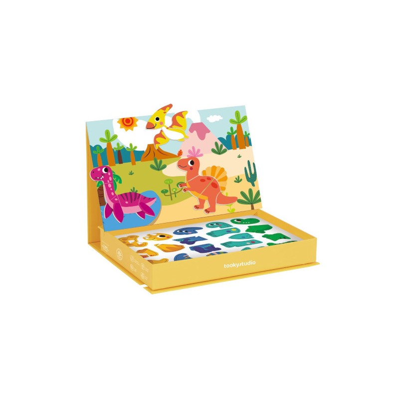 Το μαγνητικό κουτί με τους δεινόσαυρους είναι ένα συναρπαστικό και ευφάνταστο παιχνίδι που ταξιδεύει τους μικρούς εξερευνητές σε μια προϊστορική περιπέτεια. Μέσα στο κουτί, τα παιδιά θα ανακαλύψουν μια συλλογή από μοναδικά σχέδια δεινοσαύρων, ένα σχέδιο ηφαιστείου και αυγά με δεινοσαυράκια. Καθένα από αυτά τα σχέδια χωρίζεται σε μαγνητικά κομμάτια παζλ. Η μαγεία αυτού του σετ βρίσκεται στα μαγνητικά κομμάτια που κολλάνε στο ταμπλό του κουτιού, επιτρέποντας στα παιδιά να δημιουργήσουν και τα δικά τους σχέδια δεινοσαύρων. Αυτό το σετ ενθαρρύνει την εξερεύνηση, τη δημιουργικότητα και τη μάθηση.