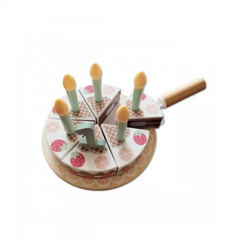 Ώρα για γενέθλια! Η όμορφη ξύλινη τούρτα γενεθλίων αποτελεί την τέλεια προσθήκη στο δωμάτιο κάθε παιδιού. Με την τούρτα αυτή τα παιδιά μπορούν να μάθουν αριθμούς με έναν διασκεδαστικό τρόπο και να αναπτύξουν κοινωνικές και λεπτές κινητικές δεξιότητες. Το σετ περιλαμβάνει 6 κομμάτια τούρτας, που συνδέονται μεταξύ τους με αυτοκόλλητο velcro, 5 κεράκια αριθμοί, 5 απλά κεράκια, πιατέλα, κάρτα γενεθλίων και σπάτουλα σερβιρίσματος.