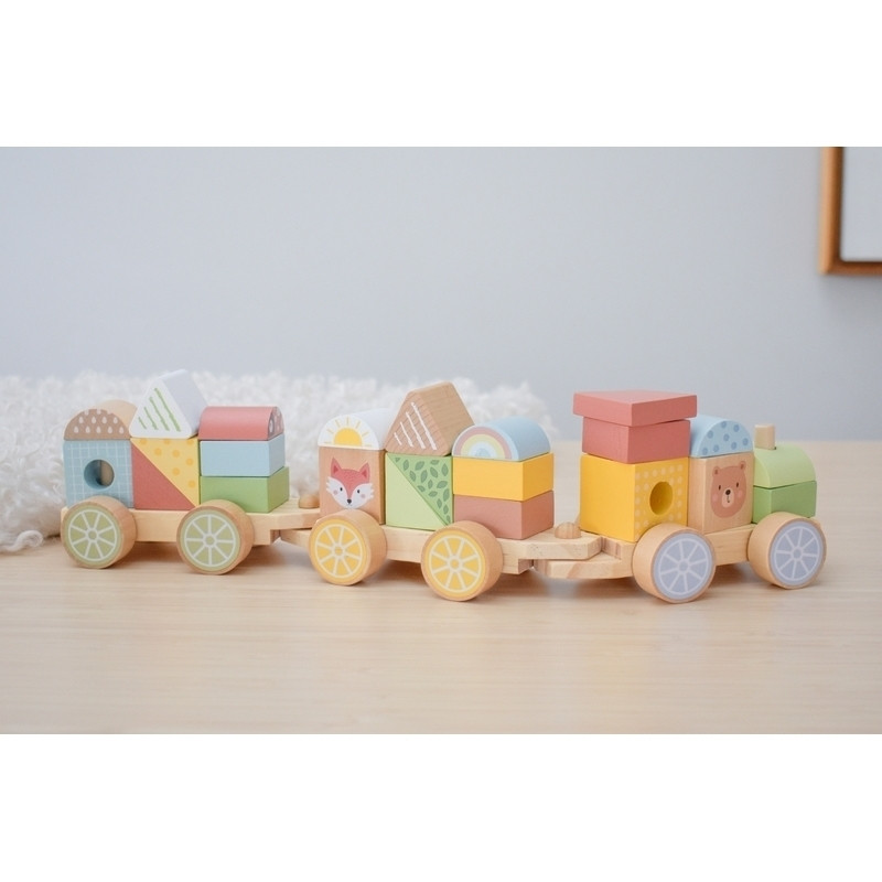 Ελάτε στην περιπέτεια με το Τρενάκι My Forest Friends από την Tooky Toy. Στον πυρήνα του, το σετ διαθέτει μια ζωντανή ξύλινη μηχανή τρένου με δύο αλληλοσυνδεόμενα βαγόνια, έτοιμα να παρασύρουν τα μικρά παιδιά σε συναρπαστικές περιπέτειες. Τα πολύχρωμα τουβλάκια επιτρέπουν στα παιδιά να αναμειγνύουν και να συνδυάζουν σχήματα και χρώματα, δημιουργώντας τα δικά τους μοναδικά μοτίβα και σχέδια. Κατασκευασμένο από ξύλο υψηλής ποιότητας, πιστοποιημένο από FSC και βαμμένο με χρώματα ασφαλή για παιδιά, μη τοξικά, αυτό το φωτεινό και χαρούμενο σετ τρένων δίνει προτεραιότητα στην ασφάλεια και την ανθεκτικότητα.